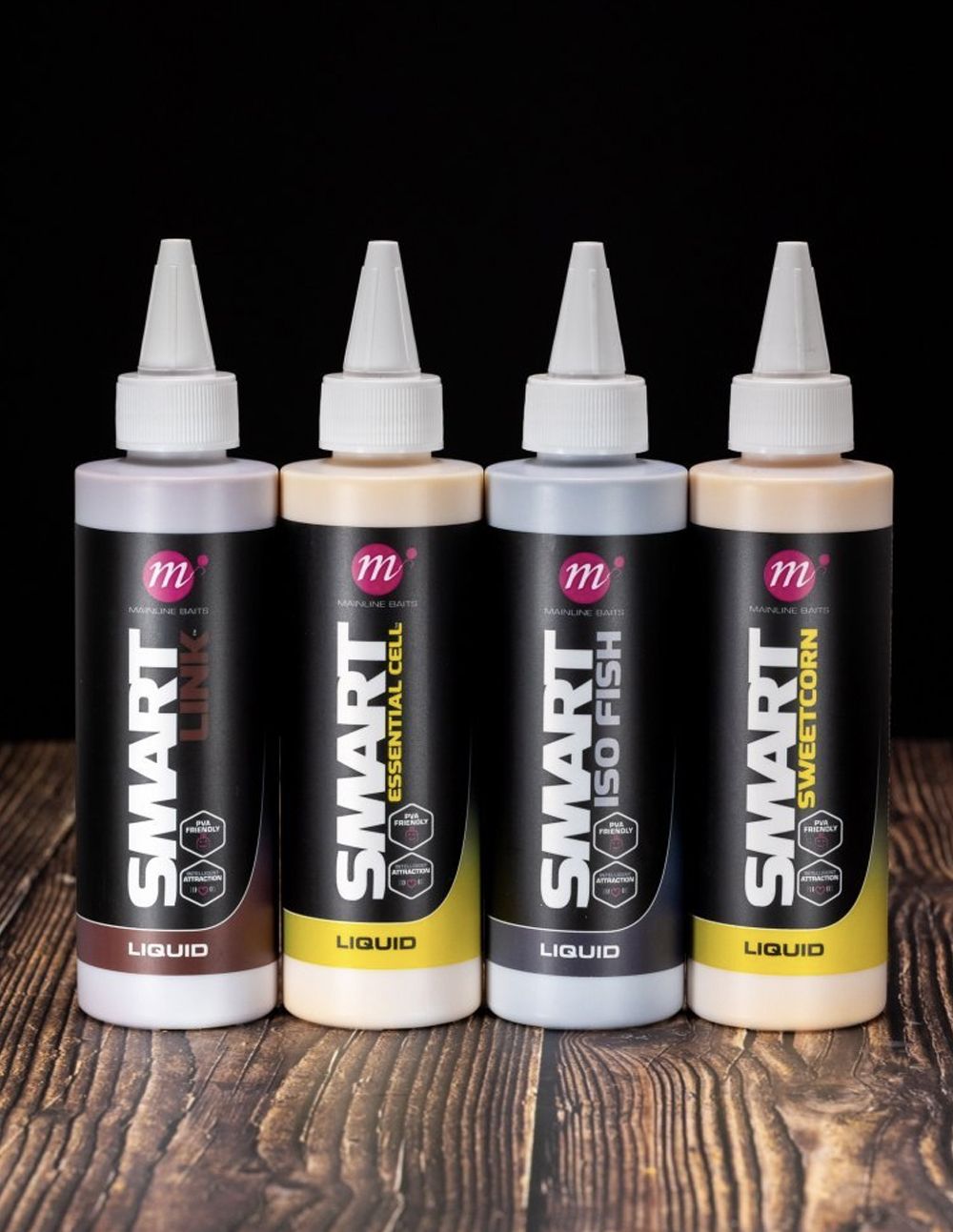 Disponible en botellas de 250 ml, el Smart Liquid Link forma parte de la gama Mainline Smart Liquid, que incluye nueve sabores distintos: maíz dulce, calamar, piña, célula, enlace, célula esencial, pescado, fruta y crema. Esto permite adaptarlo a cualquier escenario y preferencia de los peces.