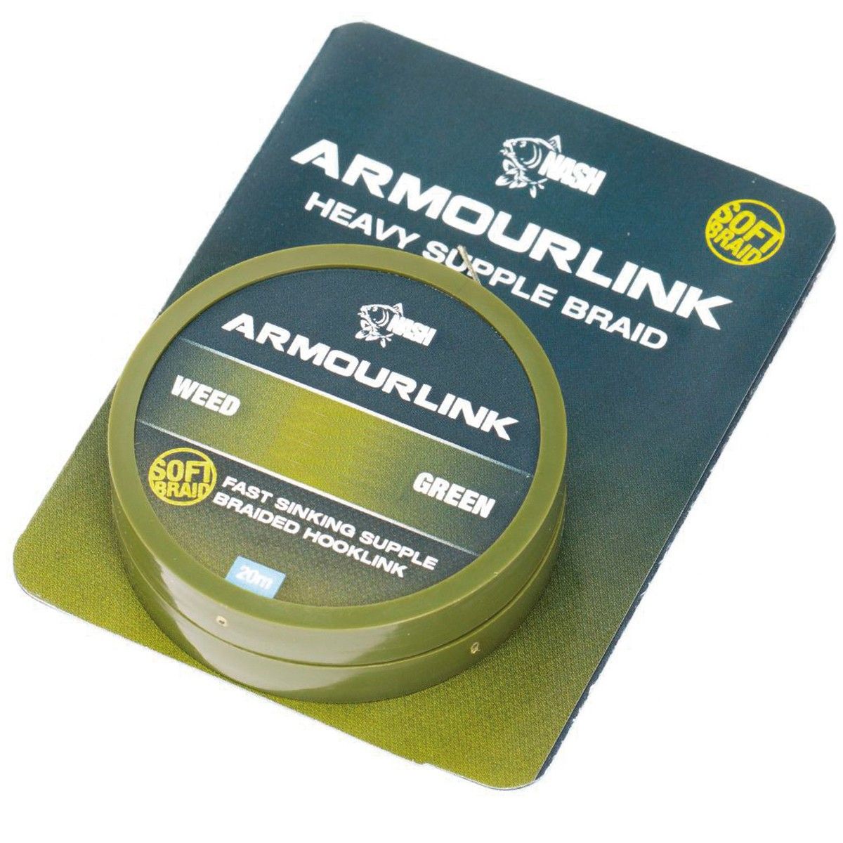 Desarrollado exclusivamente por Kevin Nash, el Armourlink utiliza fibras HD plus sinterizadas ultra pesadas mezcladas en Dyneema. El resultado es un material de enlace flexible que se hunde como una piedra, tres veces más rápido que el fluorocarbono.Encapsulado por una resina única Armourlink ha sido desarrollado para ofrecer excelentes propiedades antienredos sin un recubrimiento externo y una resistencia a la abrasión inmejorable en las situaciones más difíciles. A pesar de su fuerza, Armourlink sigue siendo increíblemente flexible en agua para la presentación final. Armourlink es un equipo terminal de vanguardia, diseñado por Nash y fabricado en Europa.