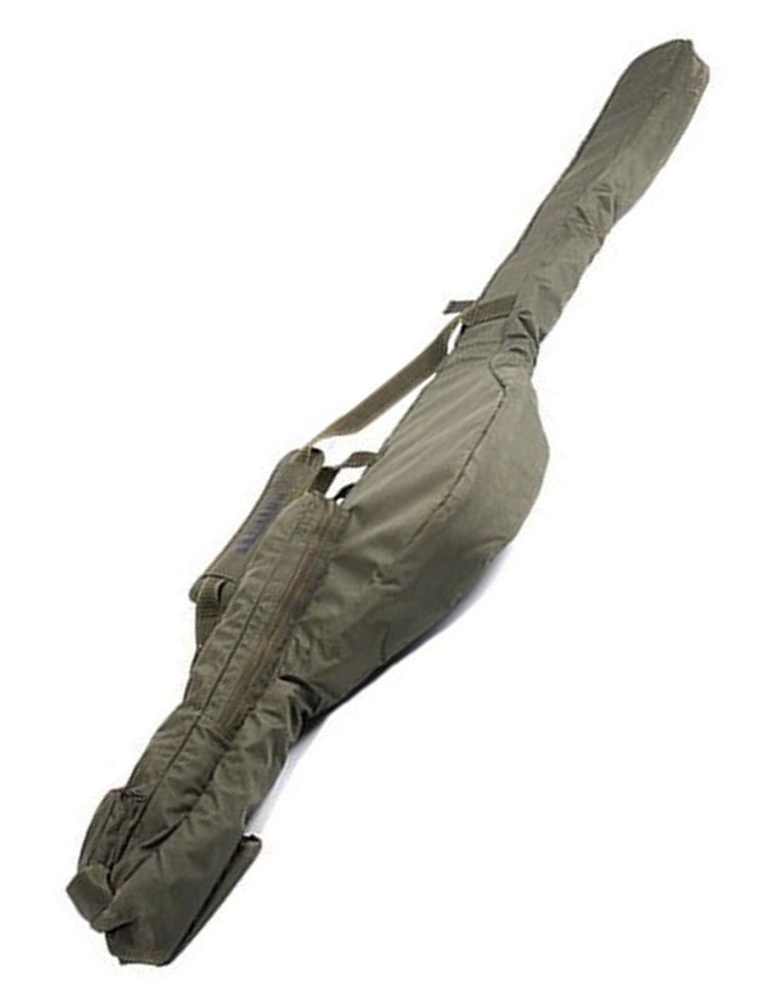 Su perfil ampliado está especialmente diseñado para acomodar cañas con anillas de hasta 50 mm, evitando presión sobre las secciones más delicadas del equipo. Además, la funda incluye un bolsillo de base reforzado con cremallera, perfecto para almacenar plomos, receptores o cualquier accesorio adicional que necesites tener a mano durante tus jornadas de pesca.