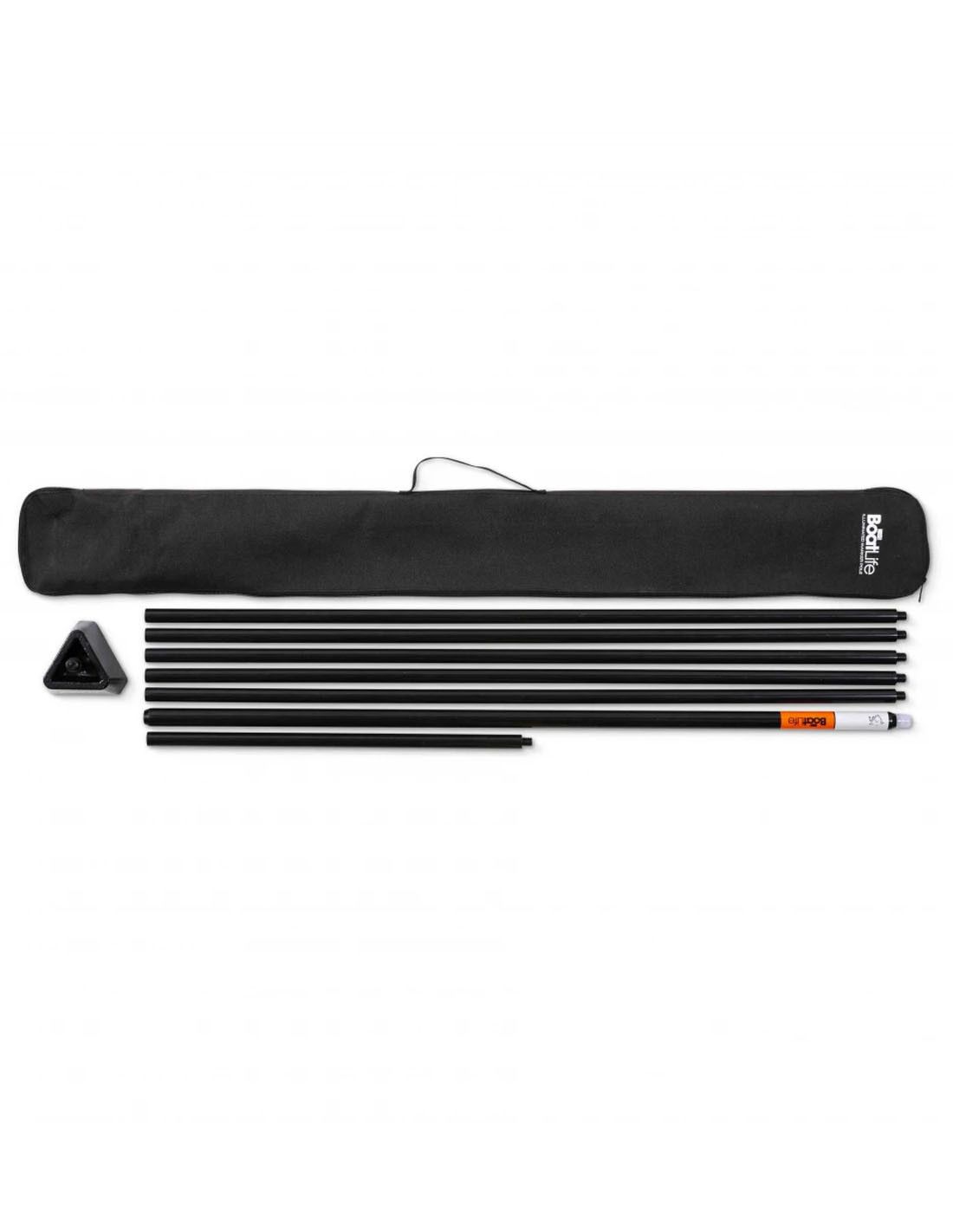 El poste incluye 5 secciones atornillables de 1 m, una sección iluminada de 1 m y una sección corta de 50 cm. Puedes ajustar la altura según tus necesidades. La bolsa de transporte con cremallera doble y bolsillo para el lastre facilita el almacenamiento y transporte.