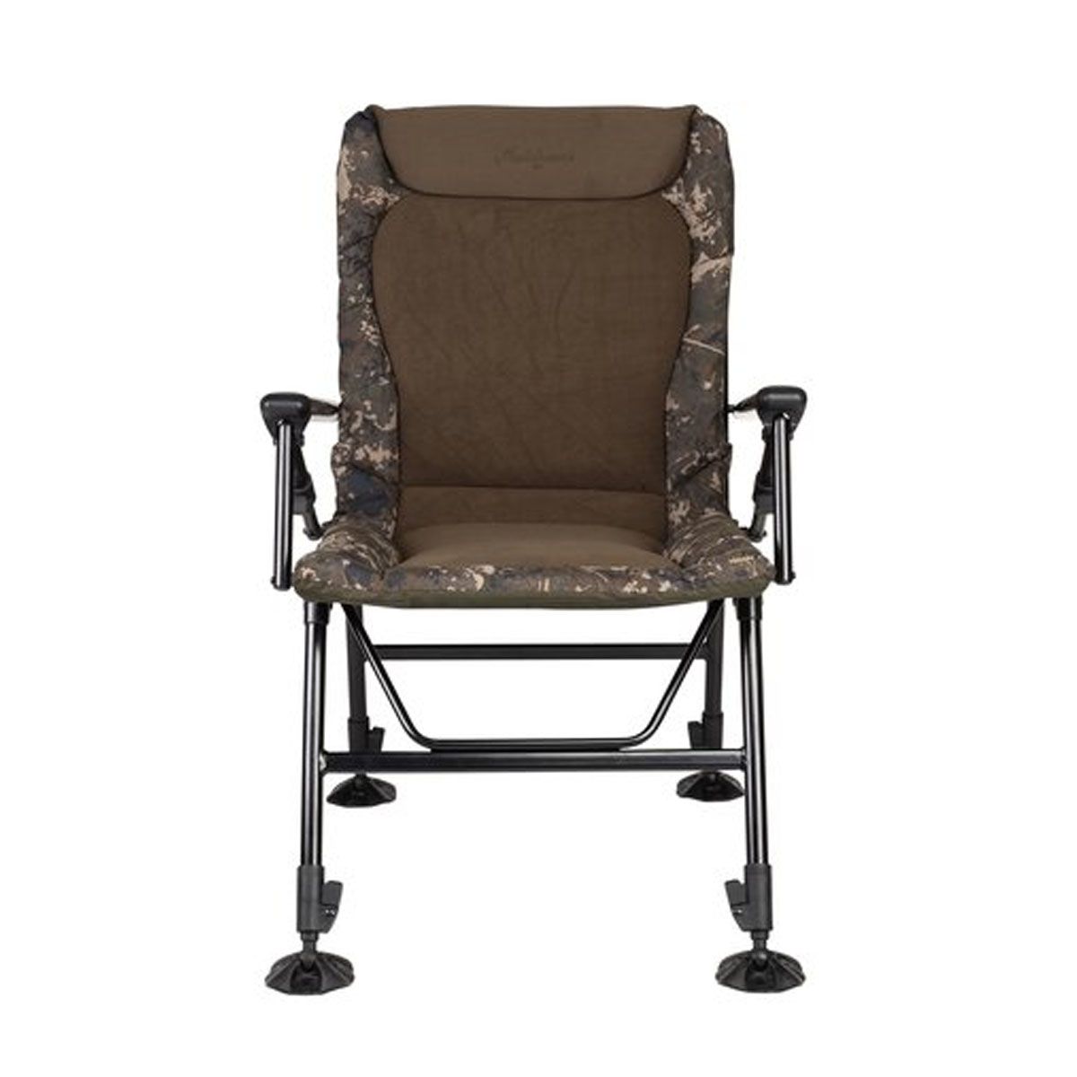 La Nash Silla Indulgence Hi-Back Auto Recline redefine el concepto de comodidad en la orilla. Diseñada para los pescadores que buscan máximo confort, ergonomía y calidad, esta silla combina tecnología avanzada, materiales de primer nivel y un diseño elegante en camuflaje Nash Camo. Su sistema de reclinación automática con ajuste por resorte permite adaptar la posición del respaldo con total precisión, garantizando una postura perfecta en cualquier momento de la jornada.