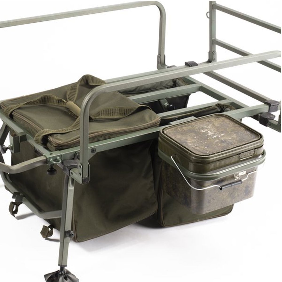 El sistema está especialmente diseñado para cubos cuadrados Nash de 10 y 17 litros, ofreciendo un ajuste perfecto y estable. Esta versatilidad lo convierte en un accesorio ideal tanto para sesiones cortas como para largas jornadas de pesca, donde la organización del equipo es clave para el éxito.