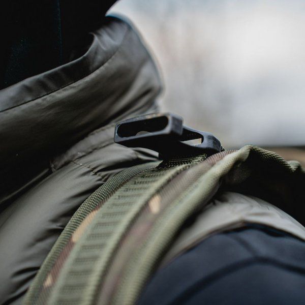 Además, su exclusivo sistema de apertura trasera permite colocarla bajo el sleepsystem y acceder fácilmente al contenido. Las correas de hombro, al fijarse a la parte trasera, crean una superficie completamente plana. Esto facilita el uso de la bandeja magnética incluida, perfecta para preparar montajes o cebos en cualquier entorno.