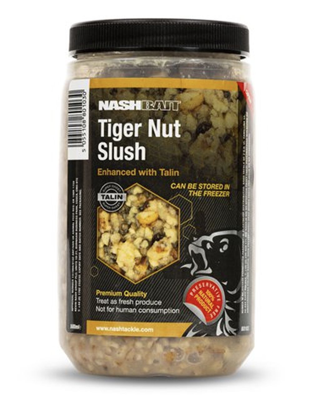 Nash Tiger Nut Slush es una mezcla de chufas españolas de la más alta calidad, molidas para incluir todos los tamaños, desde polvo fino hasta media chufa. Esta variación de tamaños permite una alimentación prolongada, creando un efecto de nube en el agua que libera atractores de manera constante y ofrece múltiples opciones para cebos de anzuelo dentro del frasco.