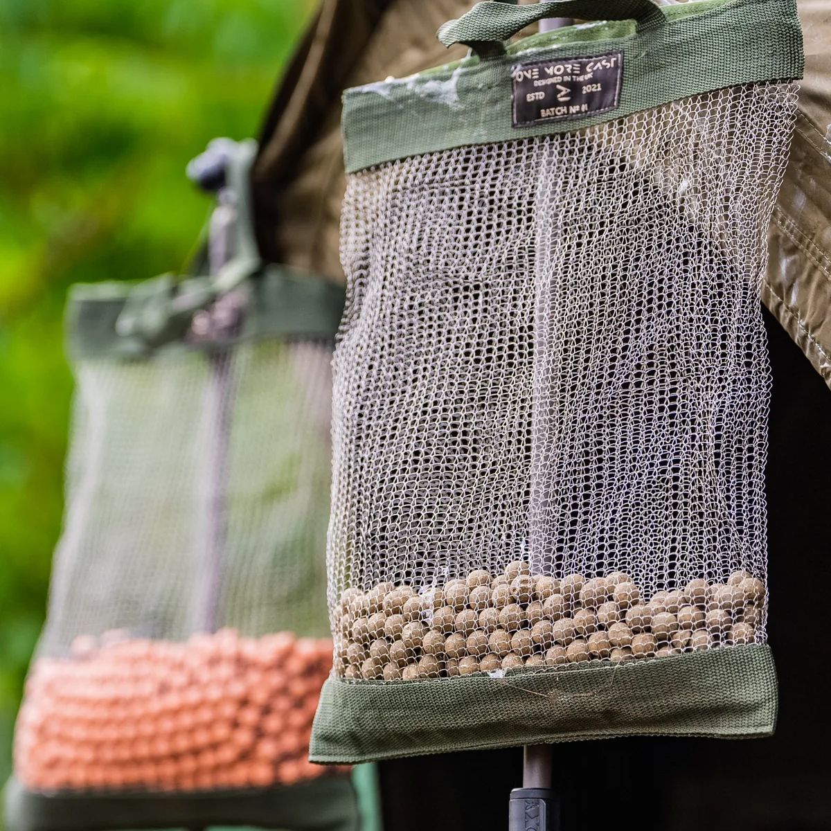 Ya sea en la orilla del río, en el cobertizo o durante largas jornadas de pesca, podrás descansar tranquilo sabiendo que tu cebo estará protegido. Olvídate de descubrir agujeros inesperados en tus bolsas: esta bolsa mantiene tus boilies y pellets grandes intactos.