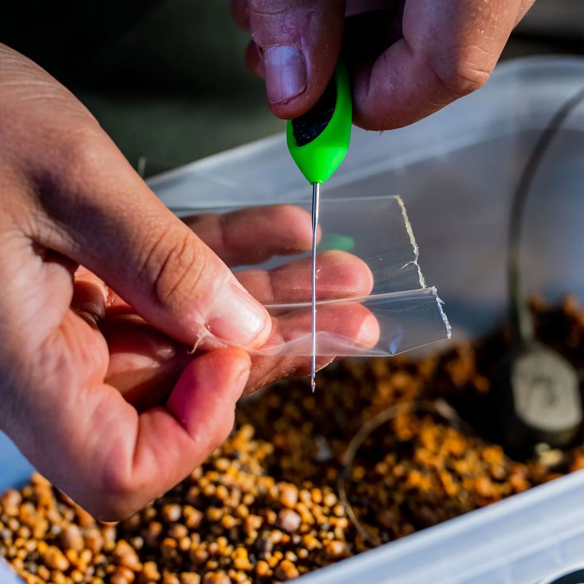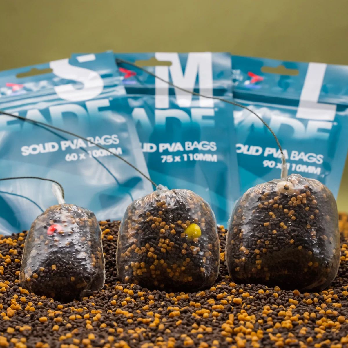 El tamaño Medium, de 75 x 110 mm, resulta perfecto para preparar cebados de gran volumen. Permite introducir pellets, boilies troceados, microsemillas o mezclas de stick mix de manera ordenada y compacta. Gracias a su diseño transparente, el pescador puede revisar fácilmente el contenido antes de cerrar la bolsa, lo que facilita un montaje rápido y sin errores.