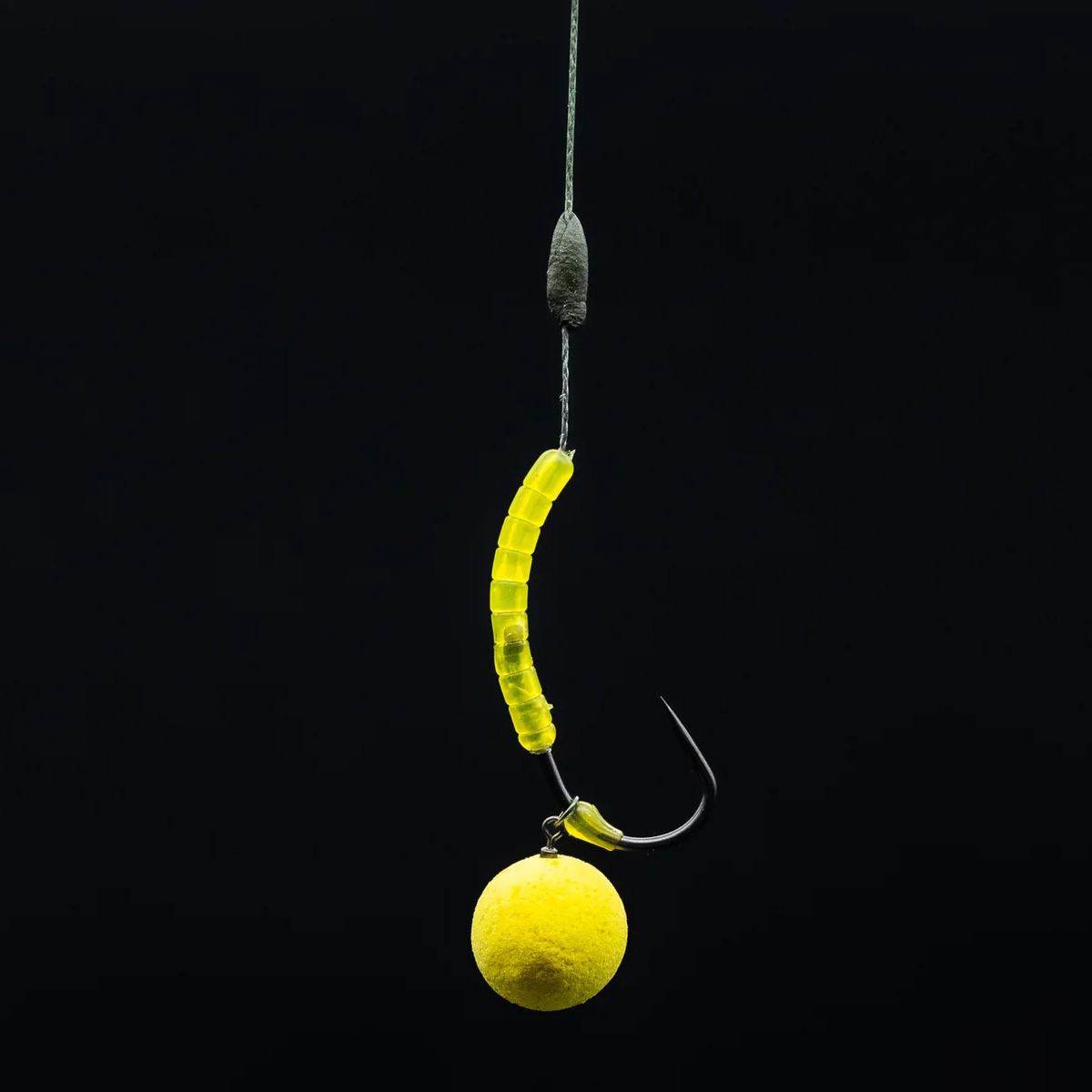 Este Cornoliner Curve destaca por su vibrante color amarillo, diseñado para atraer la atención de los peces. Su forma curva rígida (Stiff Curve) dirige la atención hacia la zona del anzuelo y crea una presentación agresiva que aumenta las posibilidades de enganche instantáneo. Es ideal para montajes como el Spinner Rig o cualquier técnica que requiera una presentación más llamativa y eficaz.