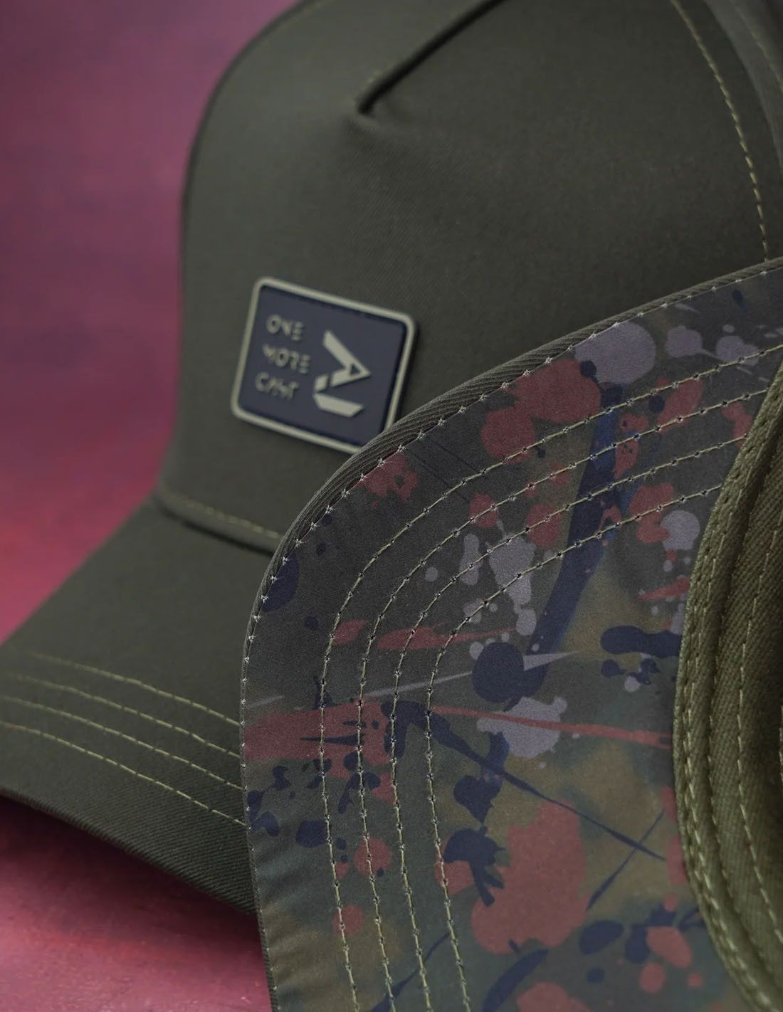 El color verde bosque característico de OMC combina perfectamente con entornos naturales. Además, el nuevo parche de goma moldeada añade un toque moderno y distintivo. Así, la gorra no solo es práctica, sino también visualmente atractiva.