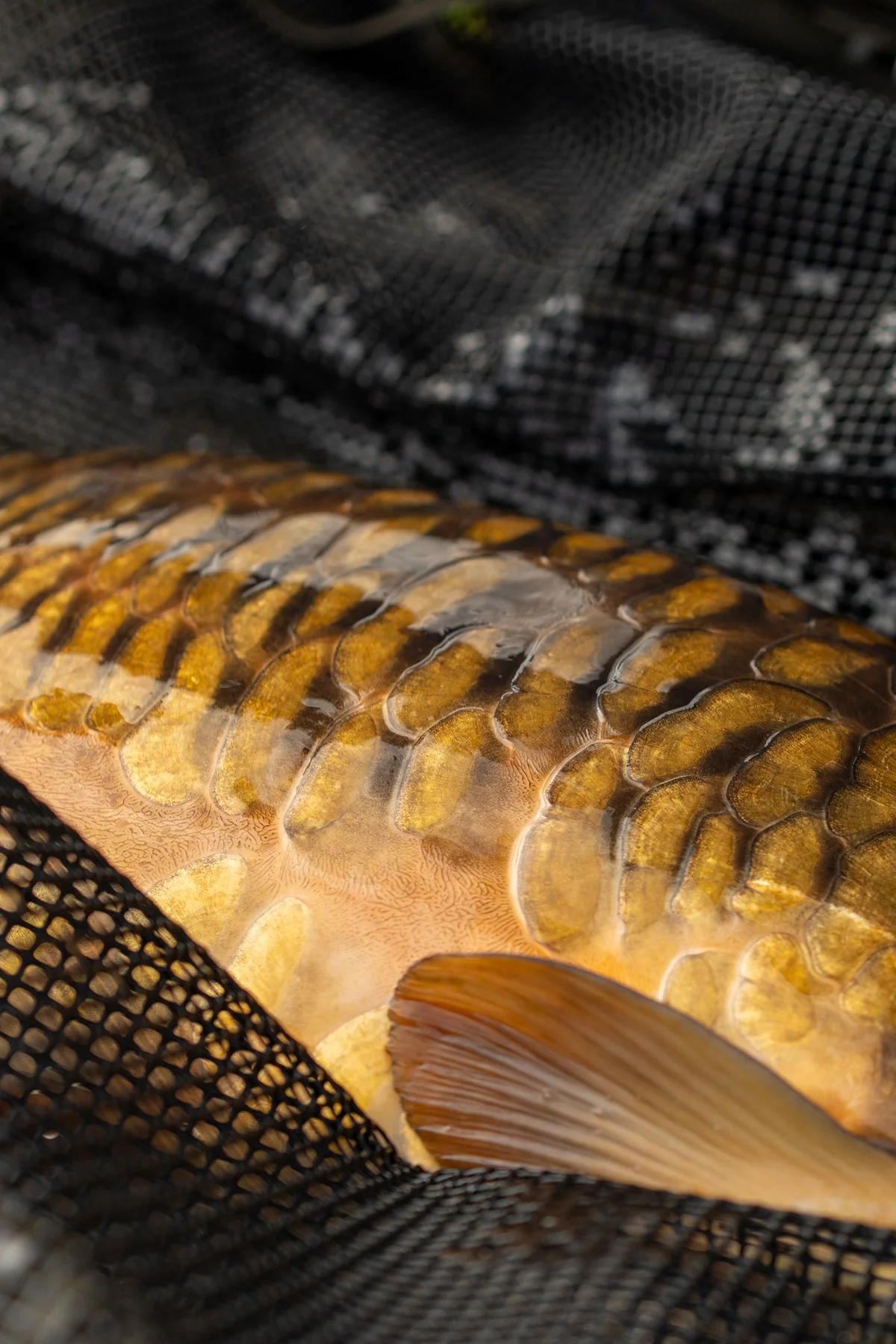 - Malla de goma Marine Grade: Suave al tacto, protege la baba y las aletas de los peces.