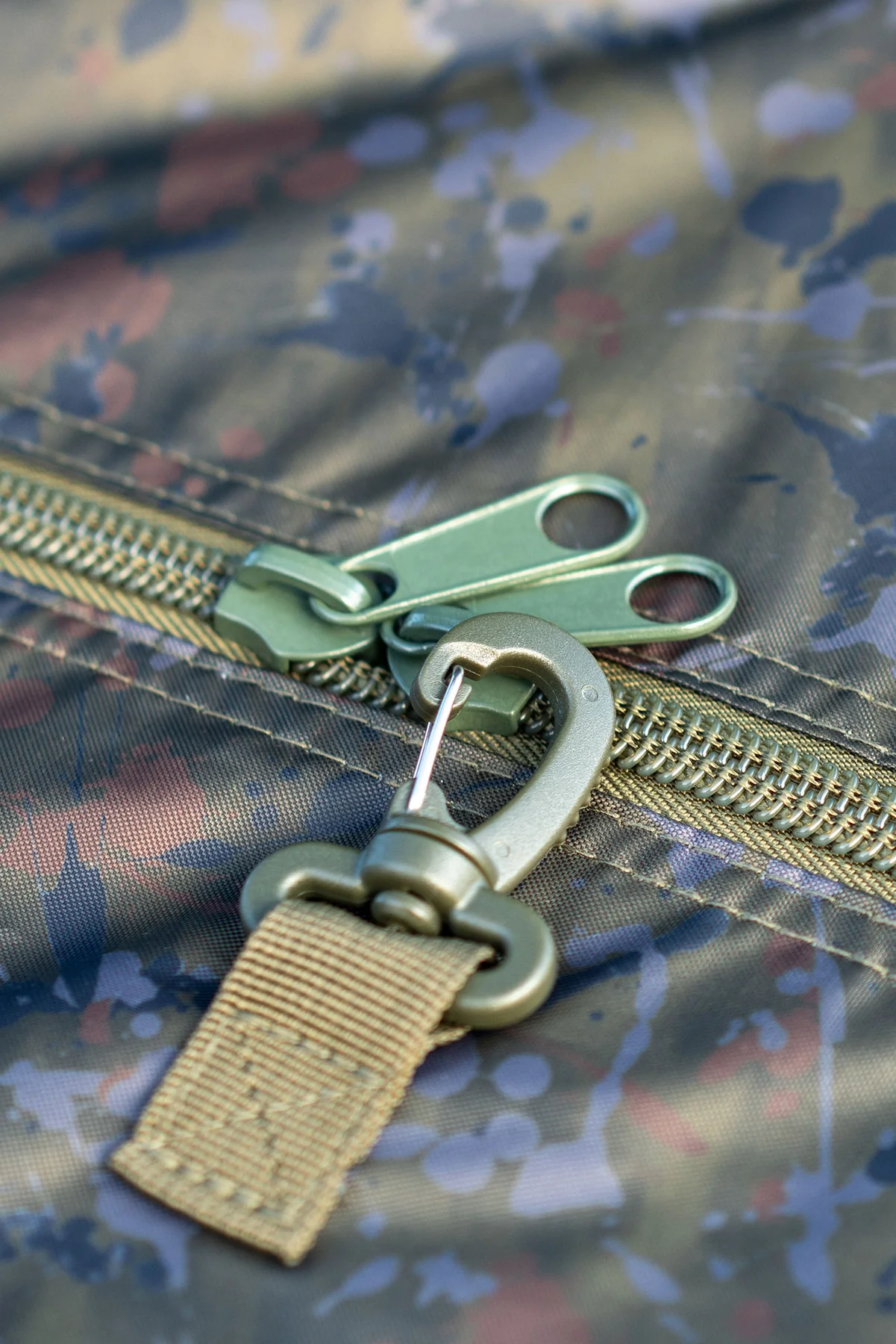 - Exterior: 210D Splash Camo, resistente a rasgaduras