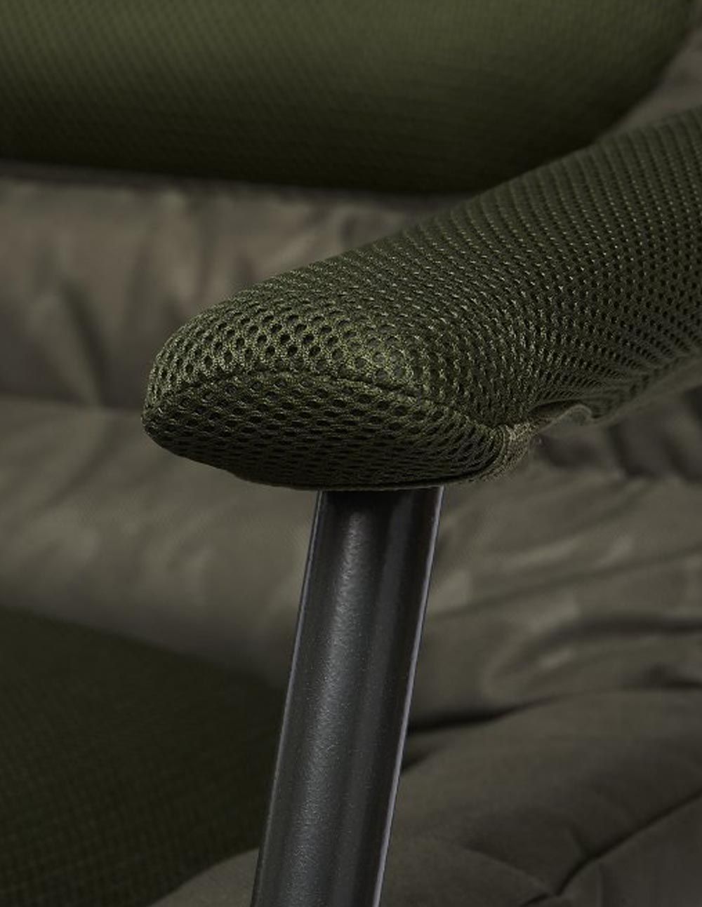 Fabricada con el exclusivo tejido MCP (Mimicry Camo Pattern), esta silla combina resistencia impermeable, transpirabilidad y un diseño camuflado elegante, ideal para entornos naturales de pesca. Su estética discreta encaja perfectamente con cualquier equipo carpfishing, mientras que su estructura robusta asegura durabilidad y estabilidad durante años de uso intensivo.