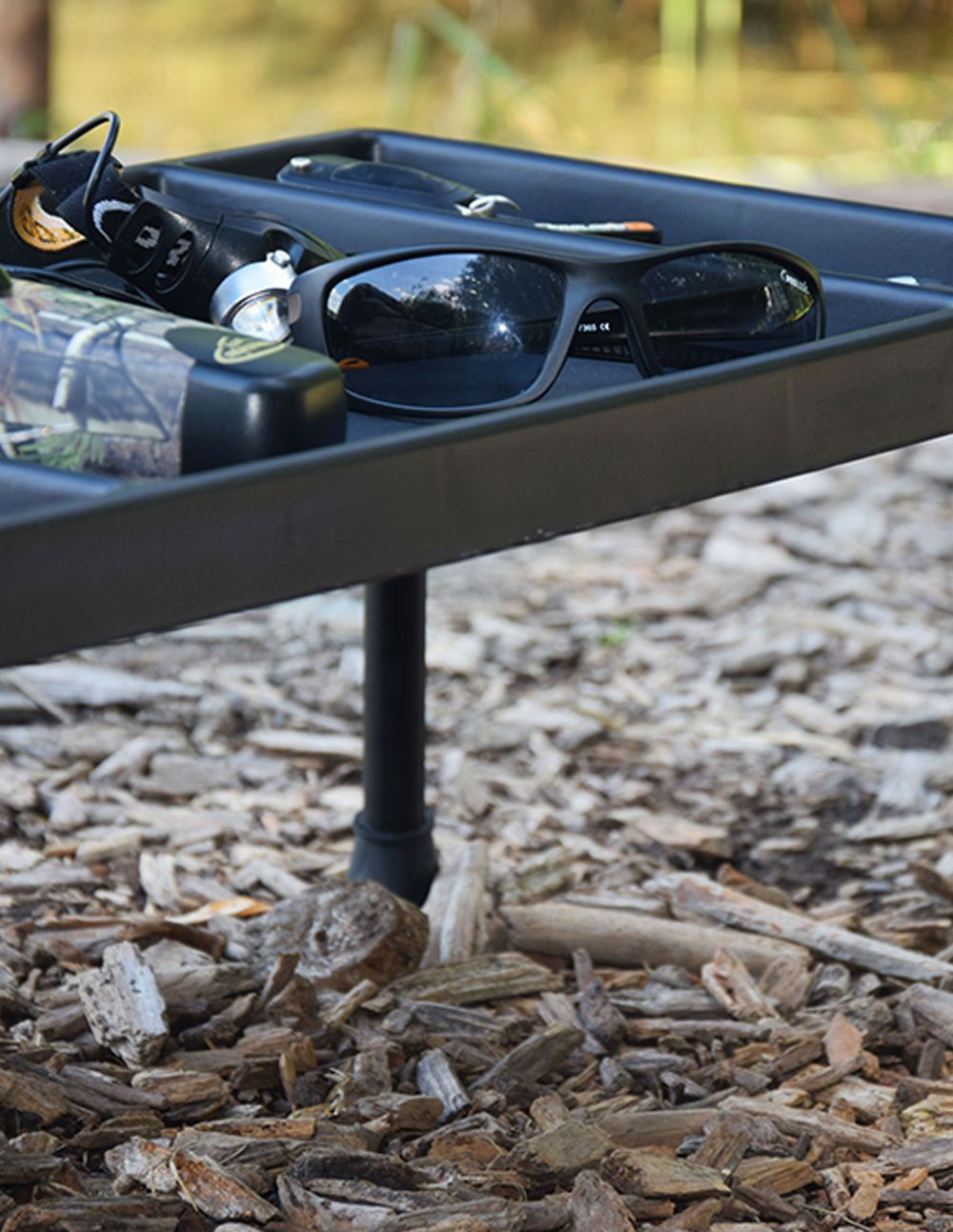 Gracias a sus dimensiones de 60 cm x 30 cm x 5 cm, ofrece espacio suficiente para organizar materiales sin ocupar demasiado sitio dentro del bivvy. Es perfecta tanto para pescadores que practican carpfishing móvil como para quienes montan campamento en sesiones prolongadas.