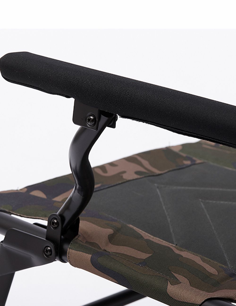 El asiento, generosamente acolchado y de tamaño 47,5 x 42 cm, junto a un respaldo de 50 cm, proporcionan una comodidad excelente, perfecta para largas horas de espera. Además, los reposabrazos con fundas de neopreno ofrecen un apoyo suave y agradable, incluso en climas fríos o húmedos.