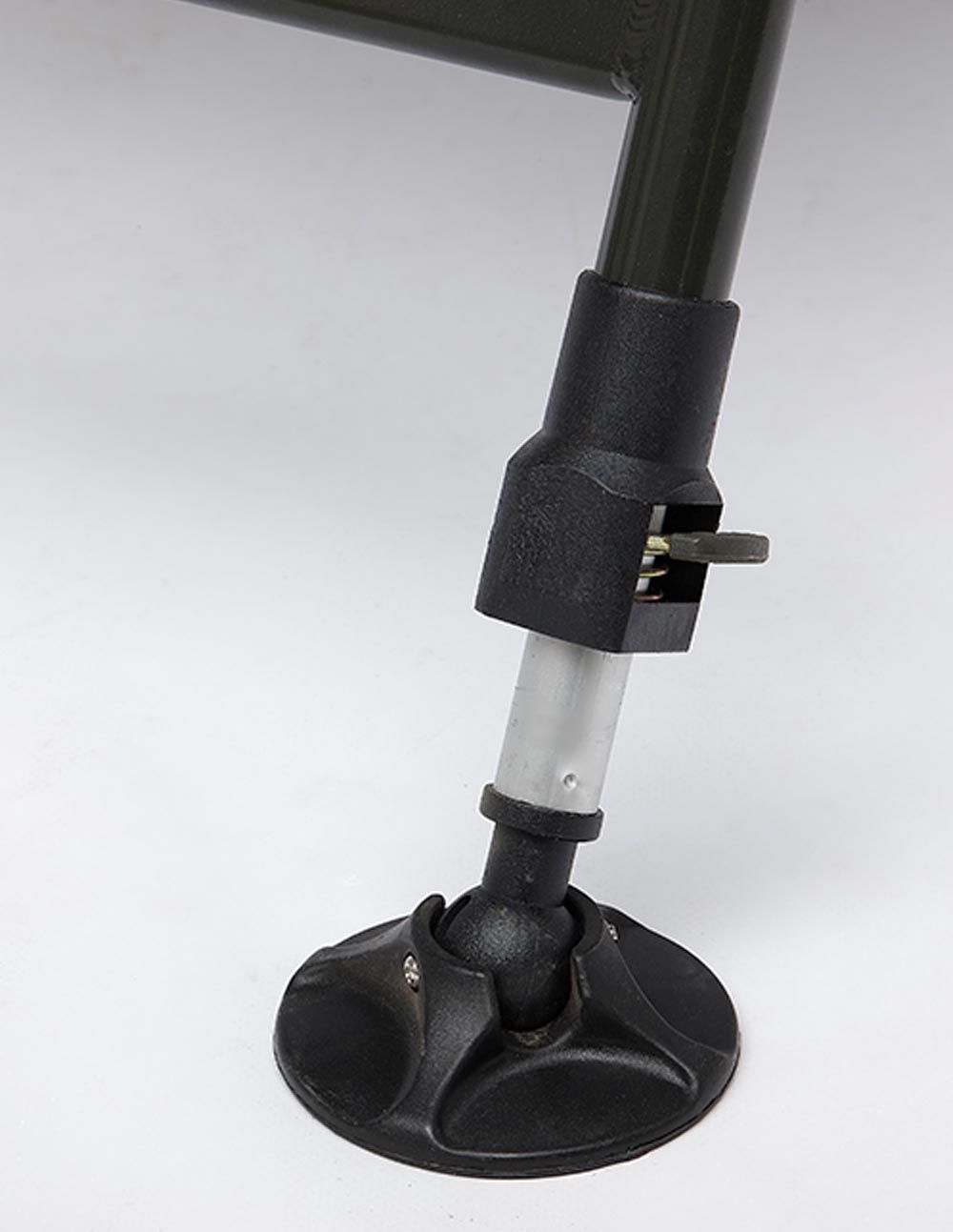 Gracias a su respaldo y reposabrazos reclinables, puedes personalizar fácilmente la postura para leer, comer o simplemente relajarte. Las patas ajustables (de 35 a 50 cm) y los pies de barro giratorios aseguran una base estable y firme, incluso sobre terrenos irregulares o húmedos.