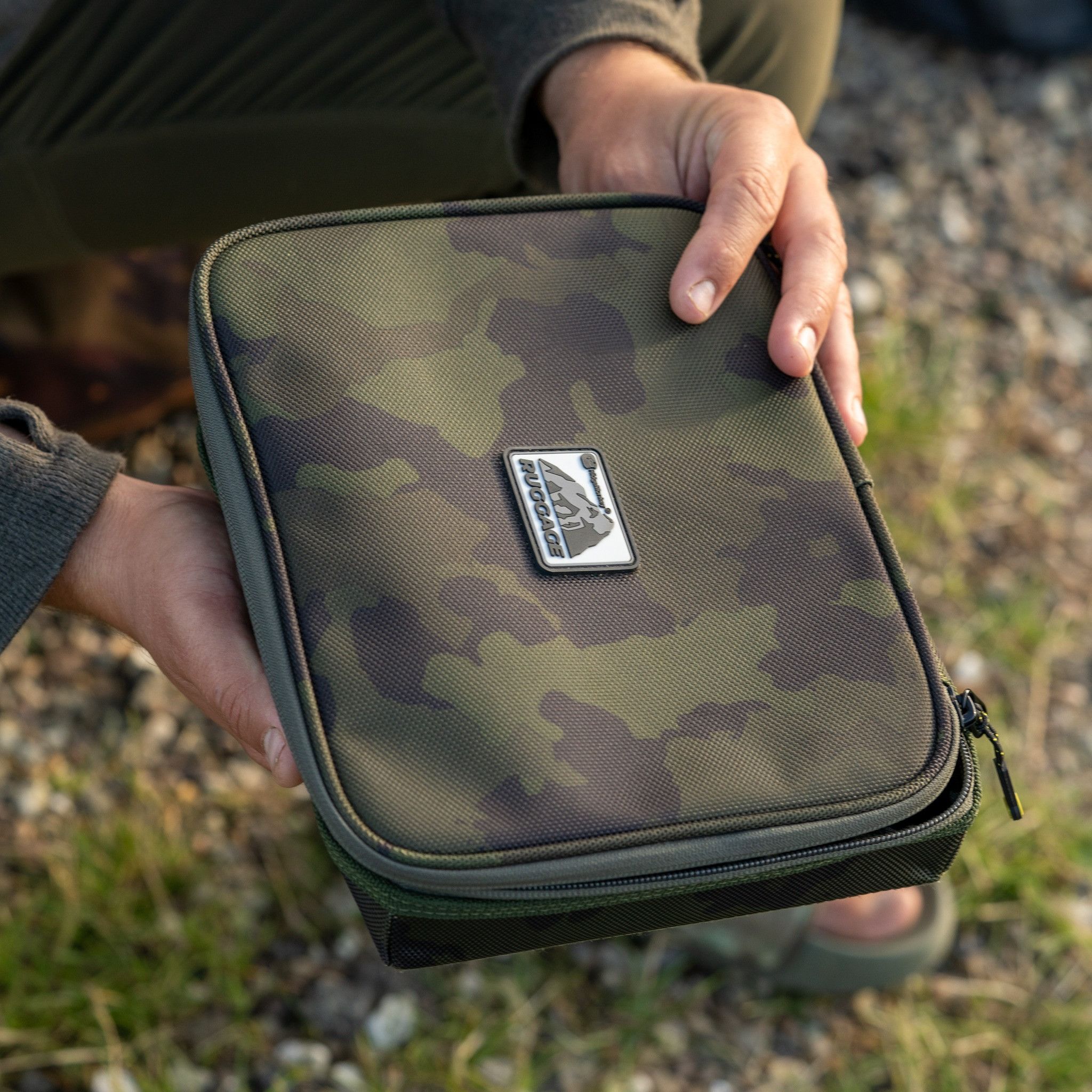 La bolsa Ruggage Scales es ideal para una amplia gama de accesorios de pesca, sin embargo está diseñado para albergar perfectamente un juego de basculas de pesca. El estuche presenta lados rígidos de paredes duras, un interior forrado acolchado y un interior de malla con cremallera, bolsillo a la tapa y acabado en el exclusivo patrón de camuflaje RidgeMonkey.