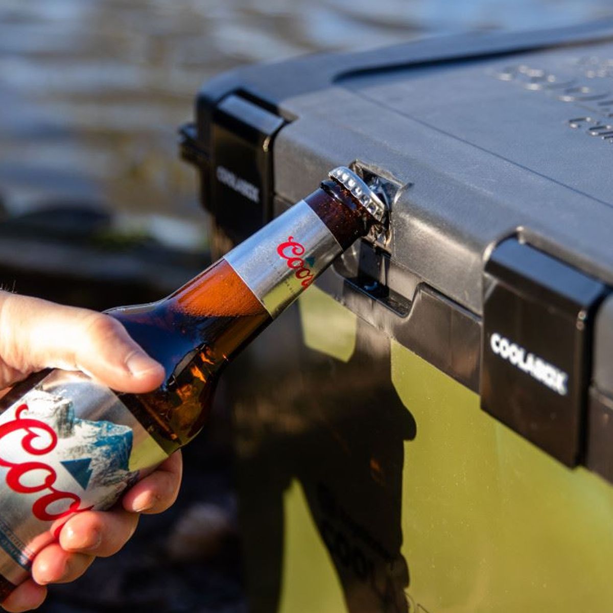 La tapa, completamente hermética, se fija con resistentes cierres metálicos e incorpora una pestaña de seguridad compatible con candado, lo que protege tus provisiones de aperturas accidentales o no deseadas. Su capacidad interior de 50 litros permite almacenar hasta 60 botellas de 330 ml o 90 latas del mismo tamaño, siendo perfecta para quienes viajan en grupo o necesitan mucho espacio de almacenaje.