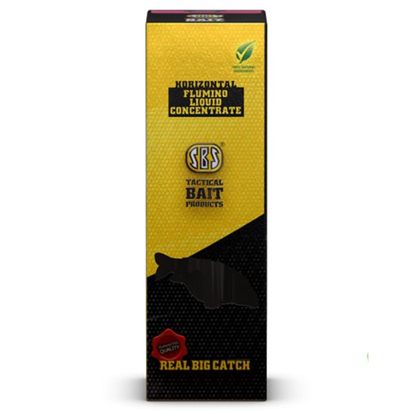 El SBS Flumino Liquid Concentrate Horizontal es uno de los productos estrella dentro de la gama Flumino. Se trata de un concentrado líquido fluorescente de alta solubilidad, formulado con un elevado contenido en aminoácidos esenciales que estimulan el apetito de las carpas de forma inmediata. Su característica principal es su capacidad para extenderse por el fondo del lago, creando una capa aromática y visual que actúa como un auténtico imán para los peces.