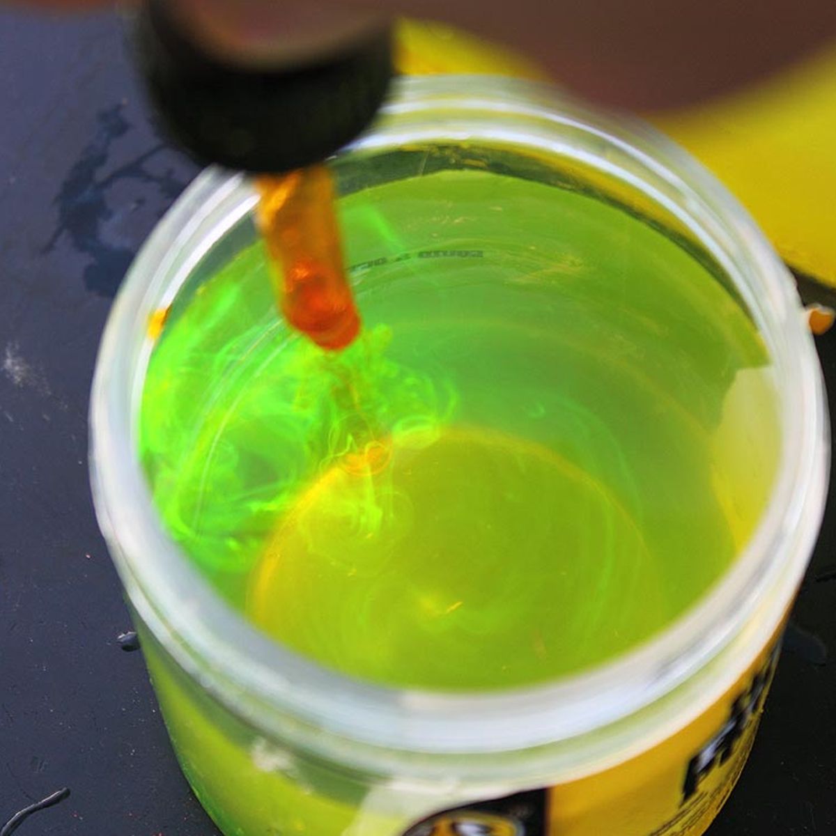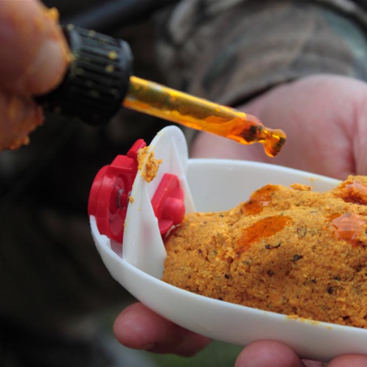 Para obtener los mejores resultados, se recomienda verterlo en gotas directamente sobre el cebo de fondo, como pellets, boilies partidos o mezclas de groundbait. Gracias a su composición, el líquido se fija en las partículas y se libera de manera lenta, lo que prolonga el efecto de atracción. Además, su color fluorescente crea un contraste visible que aumenta la curiosidad de los peces, incluso en aguas turbias.