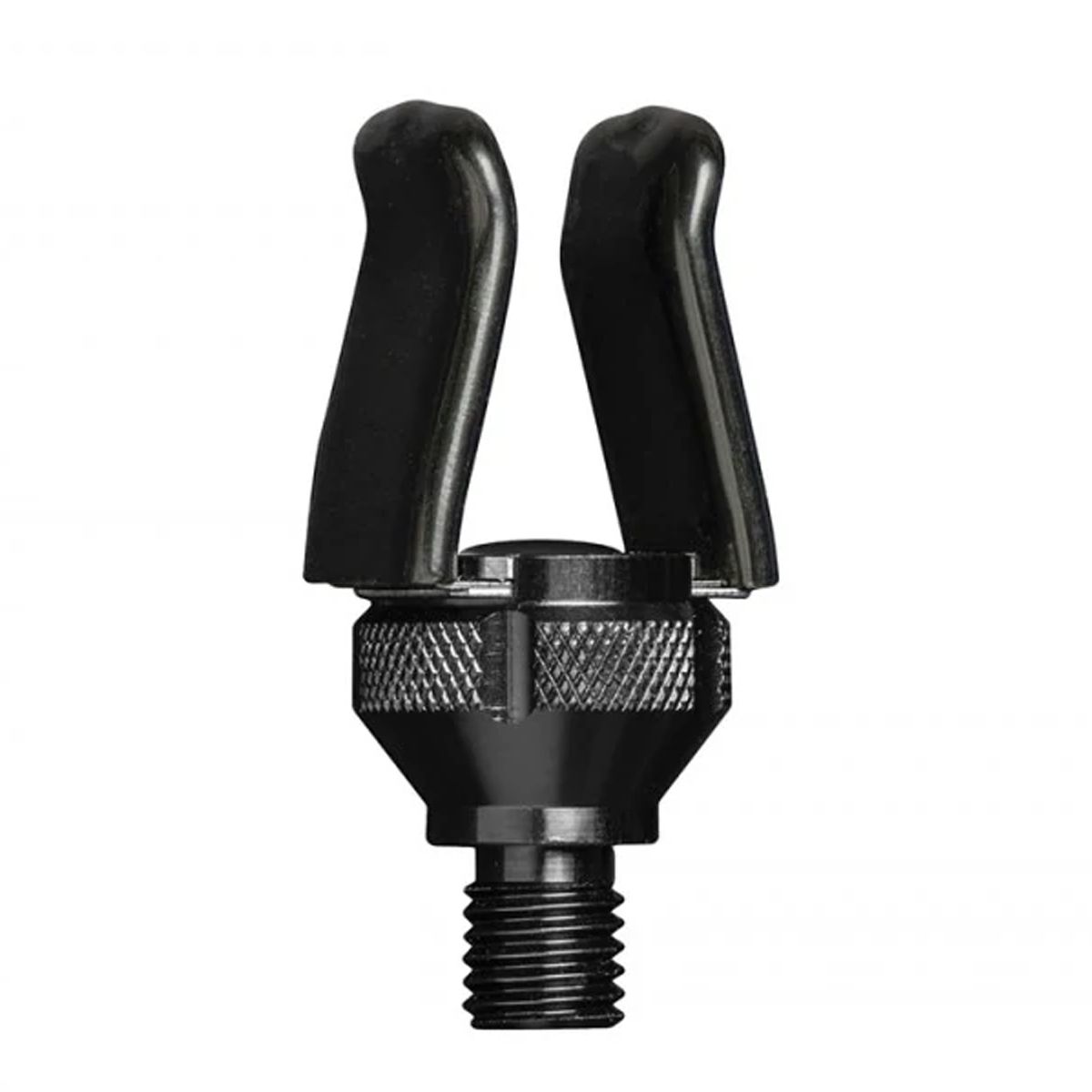 Para asegurar un agarre óptimo sin dañar la superficie de la caña, ajusta la presión del tornillo central de forma que el recubrimiento de goma haga contacto firme pero sin tensión excesiva. Esto alarga la vida útil tanto del soporte como de tu caña.