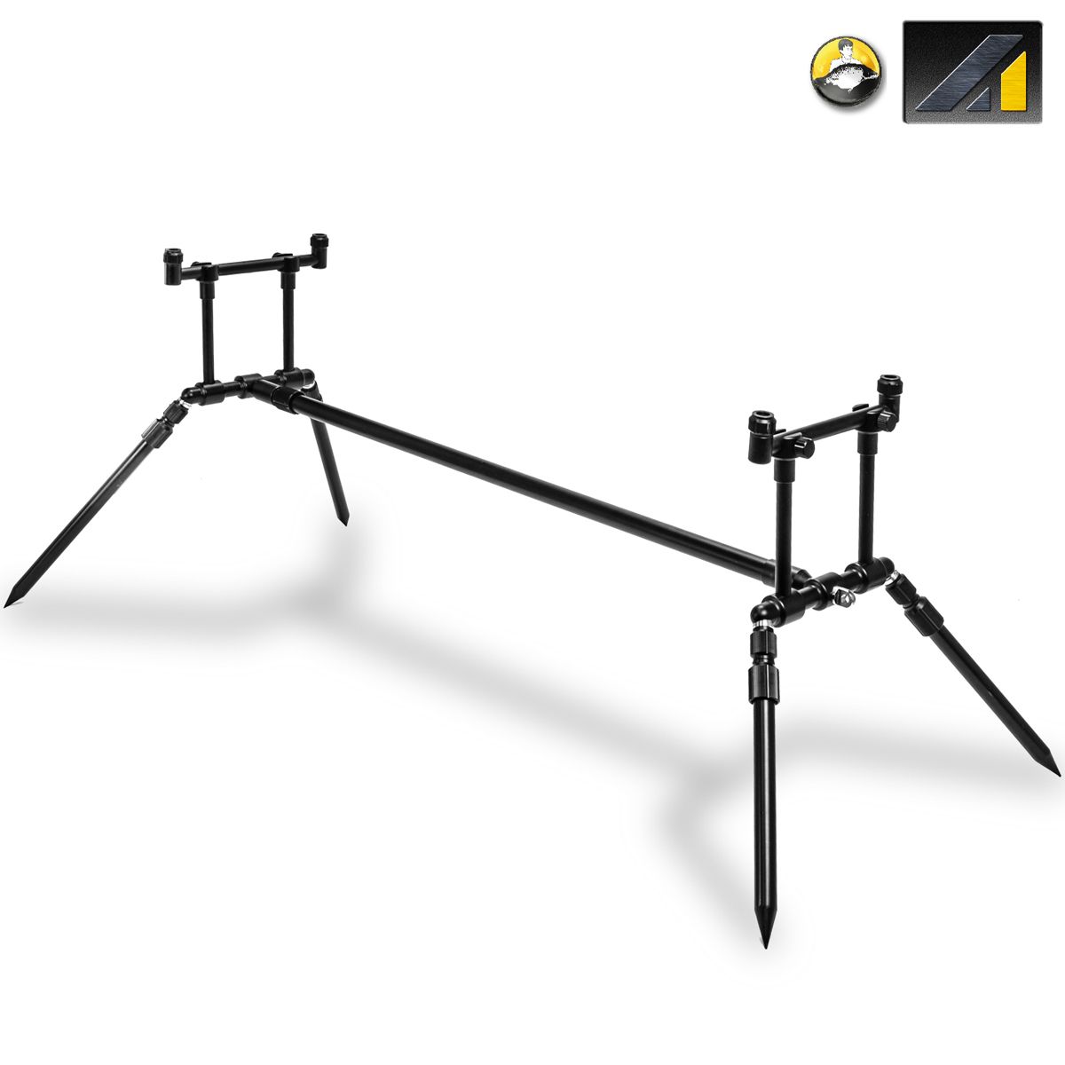 Gracias a su barra principal extensible (de 700 mm a 1270 mm) y a sus cuatro patas ajustables, este trípode se adapta fácilmente a orillas irregulares, pendientes o zonas con vegetación. Las patas, rematadas en punta, pueden clavarse firmemente en el suelo para ofrecer una sujeción segura, incluso en superficies blandas o inclinadas.