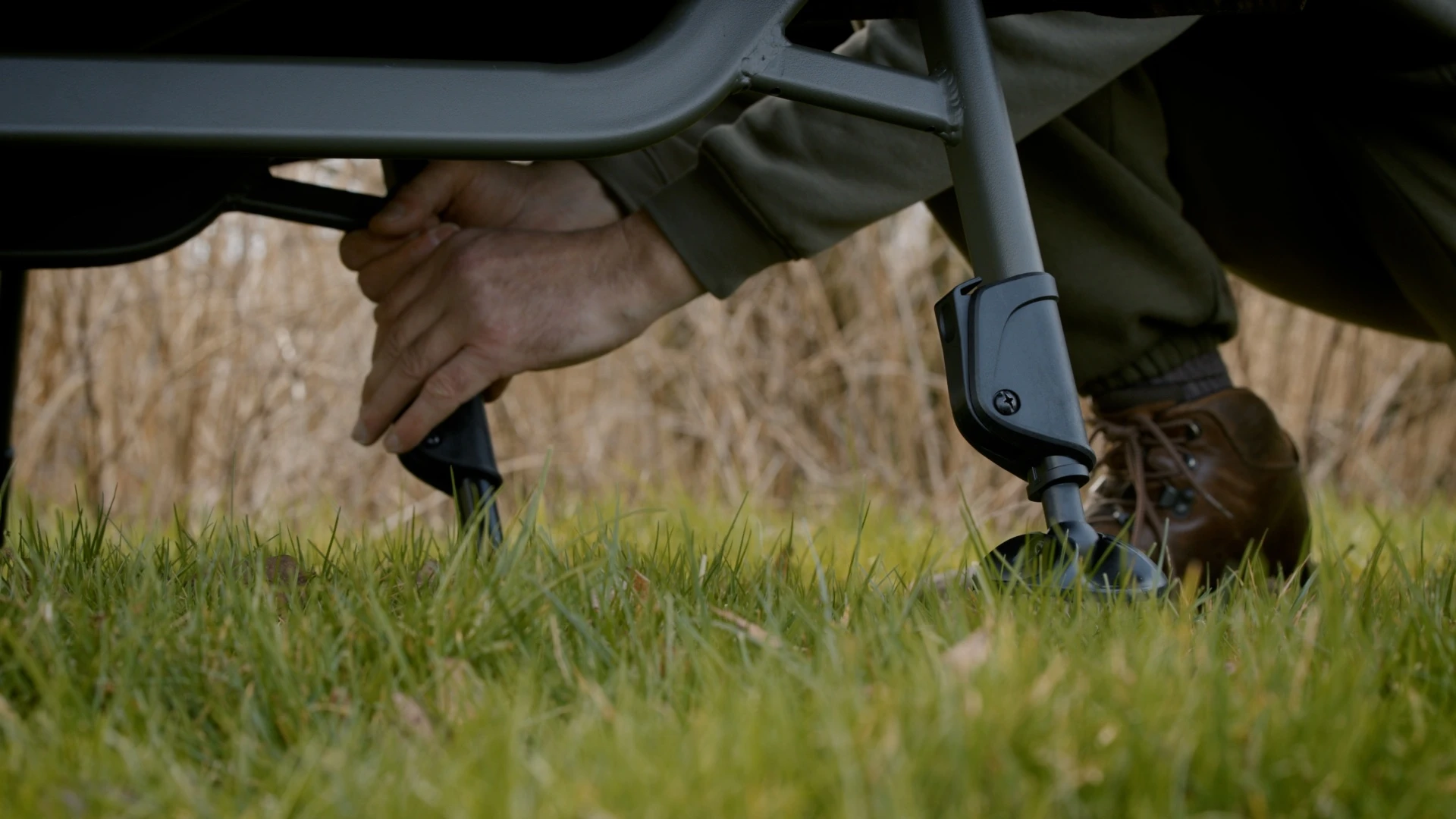 El marco de aluminio reforzado y ampliado garantiza una resistencia excepcional sin comprometer la estabilidad. Su sistema de patas ovaladas con bloqueo Spring-Loc añade soporte adicional, evitando movimientos o hundimientos, incluso sobre terrenos irregulares.