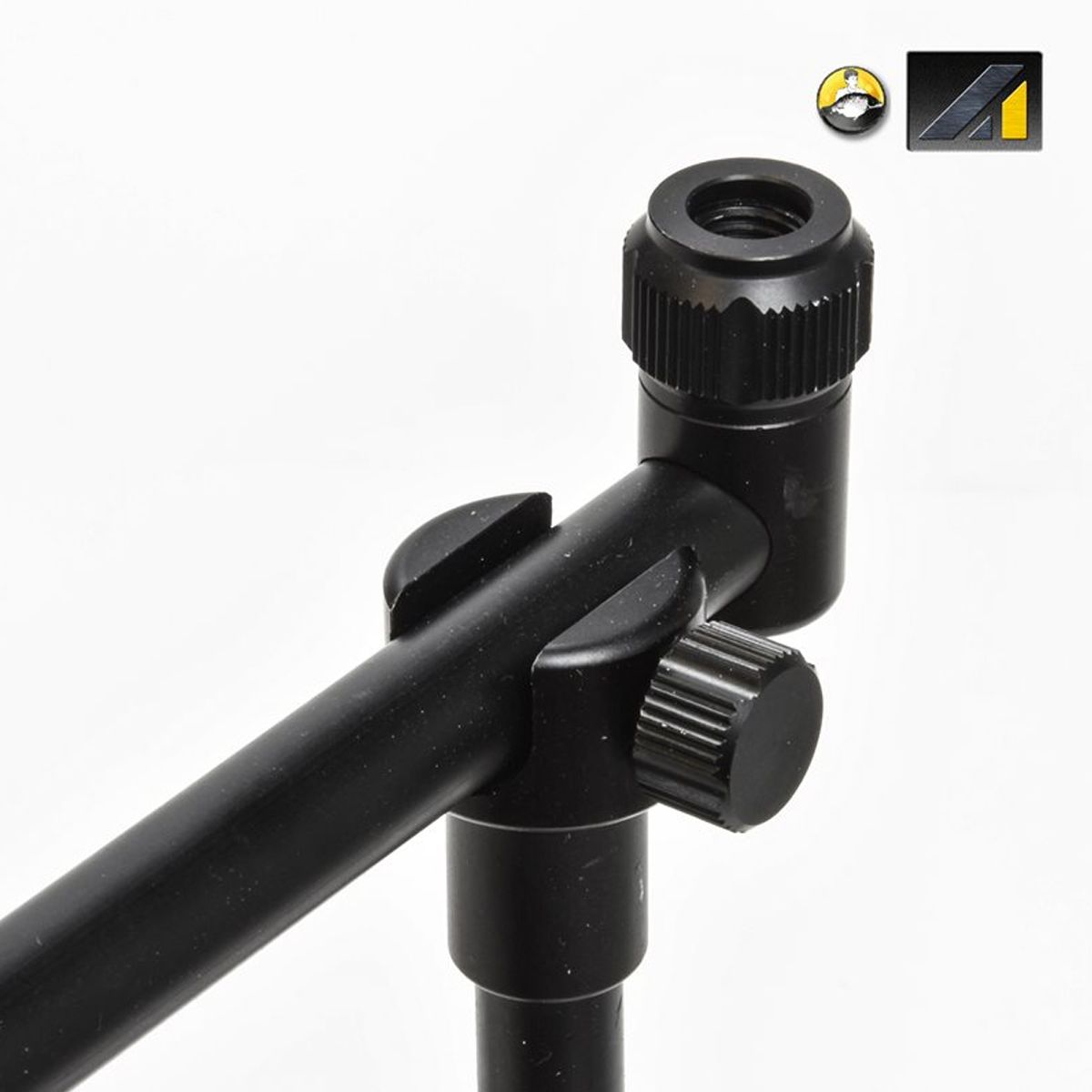 Este modelo incluye un par de buzzer bars A1 de tres cañas, equipadas con un dispositivo anti-torsión que mantiene las cañas perfectamente verticales y alineadas, incluso en condiciones ventosas o durante picadas fuertes. Además, incorpora un sistema de sujeción tipo portería para maximizar la rigidez de todo el montaje.