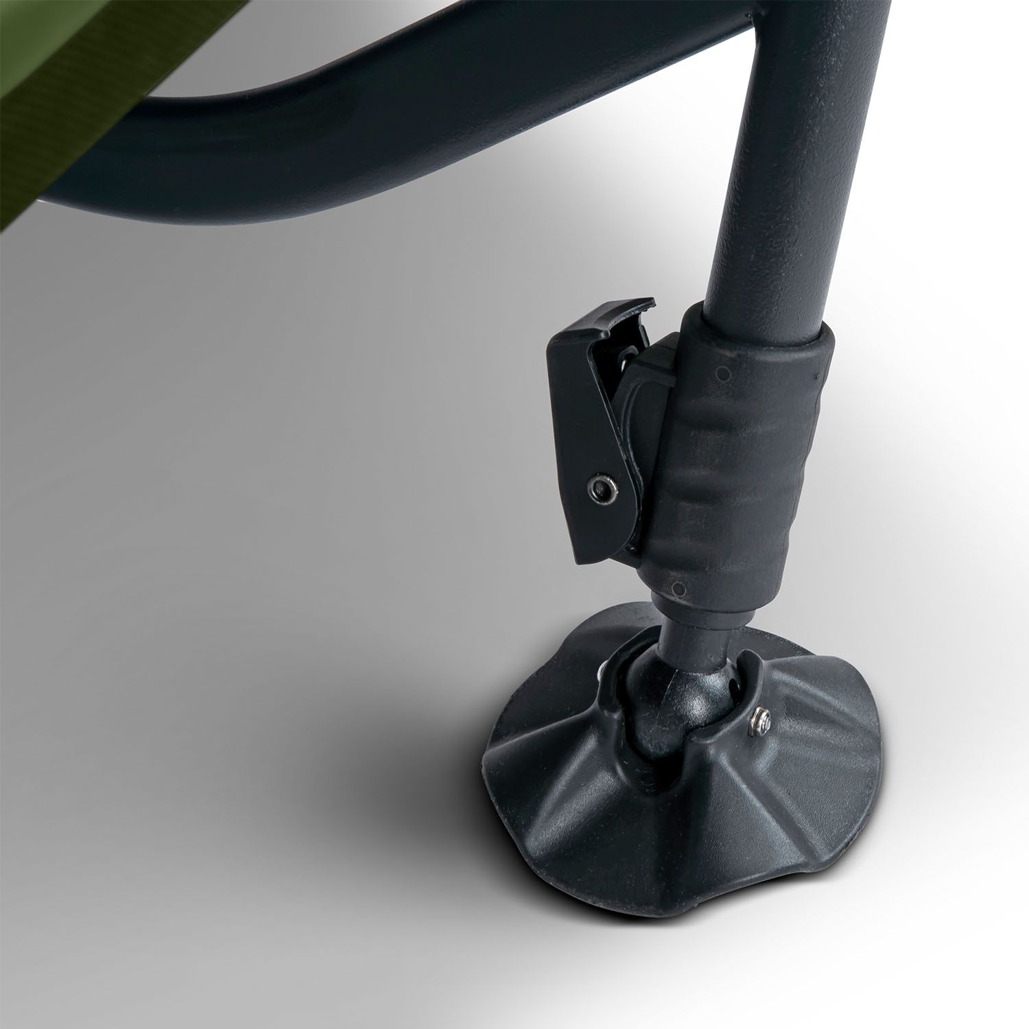 Las patas están separadas y cuentan con una sección de pie corta para ofrecer mayor resistencia y estabilidad en terrenos irregulares. Además, incorpora el mecanismo de patas Grip-Lok™, que permite un ajuste de altura fácil y seguro, adaptándose a las necesidades del usuario. Otro detalle práctico es el soporte doble sobredimensionado plegable que facilita el almacenamiento del saco de dormir directamente bajo el lecho.