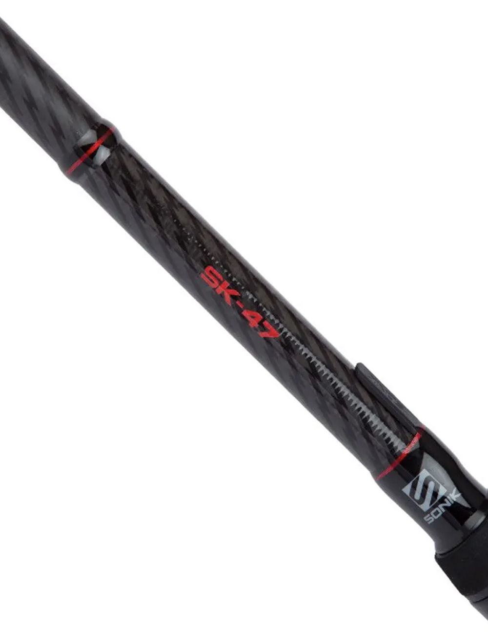 Fabricada con un blank de carbono de alto módulo, la SK-47 Spod & Marker ofrece una acción progresiva pero potente. Su punta multidireccional en carbono mejora la precisión al lanzar spombs o marcar zonas de pesca. Además, la recuperación ultra rápida tras el lance proporciona un control perfecto del aparejo y reduce la fatiga del brazo.