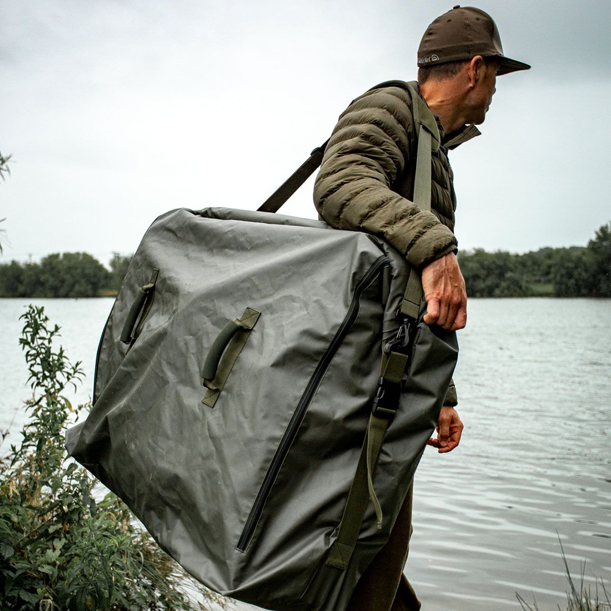Consejo experto: Si pescas en zonas húmedas o durante el invierno, guarda la funda dentro del bivvy cuando no la uses. Así la mantendrás seca y lista para el siguiente transporte, prolongando su vida útil.
