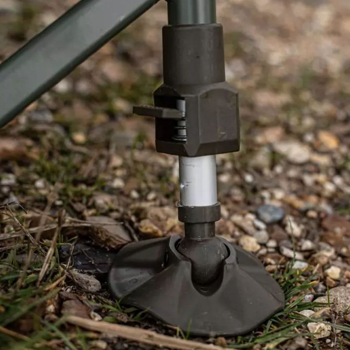 • Seis patas ajustables con pies de barro giratorios, ideales para cualquier tipo de terreno.