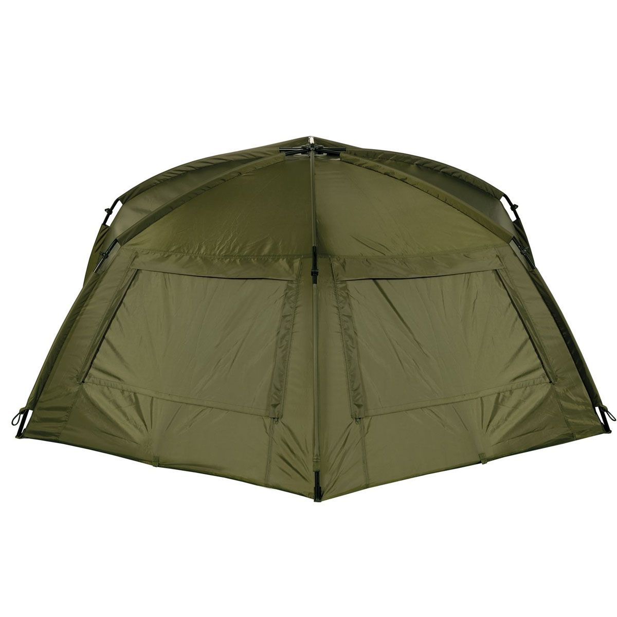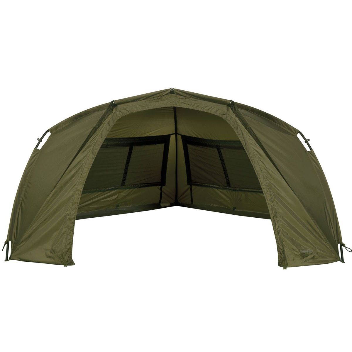 Este bivvy ha sido diseñado para alojar cómodamente una cama de pesca y dejar espacio extra para el equipo esencial. También incorpora correas dobles para sujetar las cañas, una característica muy valorada por pescadores técnicos.
