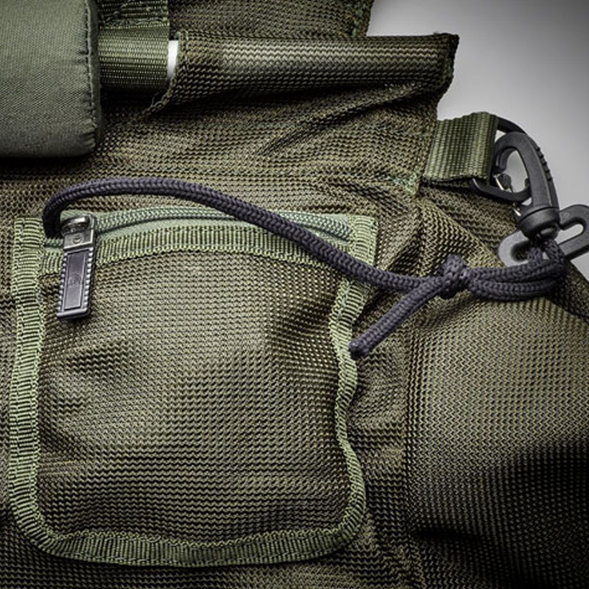 Los cuatro flotadores integrados ofrecen una flotabilidad ultra estable, fundamental cuando se retiene un ejemplar grande por unos minutos en el agua. La doble cremallera superior mantiene a la carpa segura, sin riesgo de escape, mientras que las correas de pesaje reforzadas y con bucles fijos garantizan una elevación firme y equilibrada, incluso en condiciones exigentes.