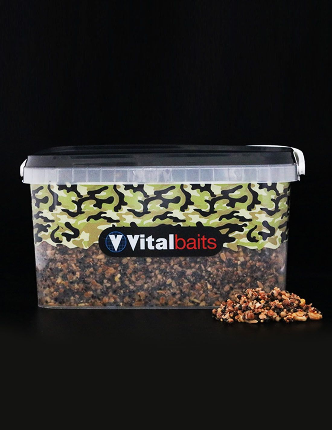 Vitalbaits Prepared Particles Mix NUT MIX 3kg – Una mezcla versátil, nutritiva y PVA friendly, perfecta para mantener el atractivo del cebadero incluso en los momentos más duros de la temporada.